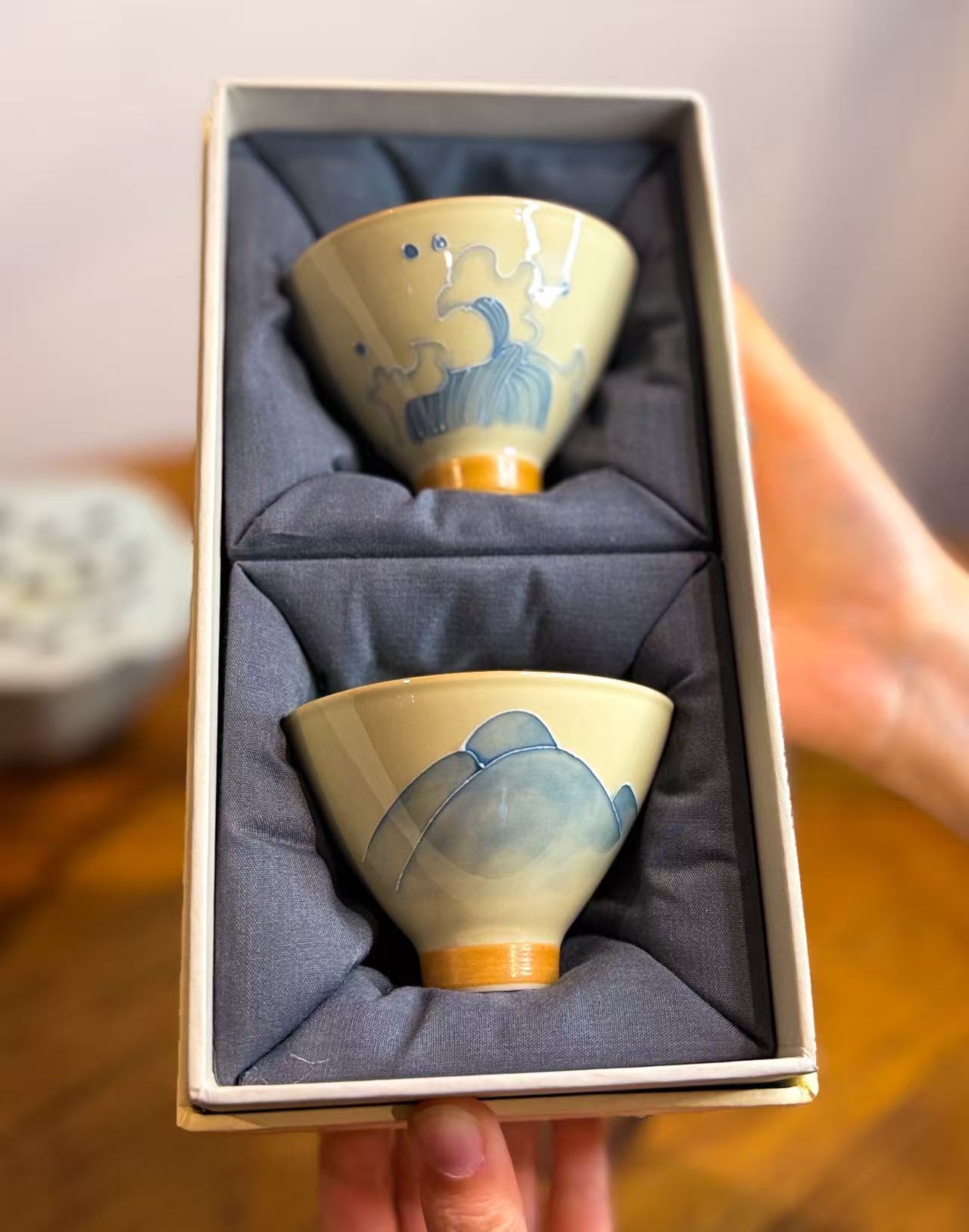 Mountains and Seas Hand-painted pair cups -- Bamboo Hat Cup