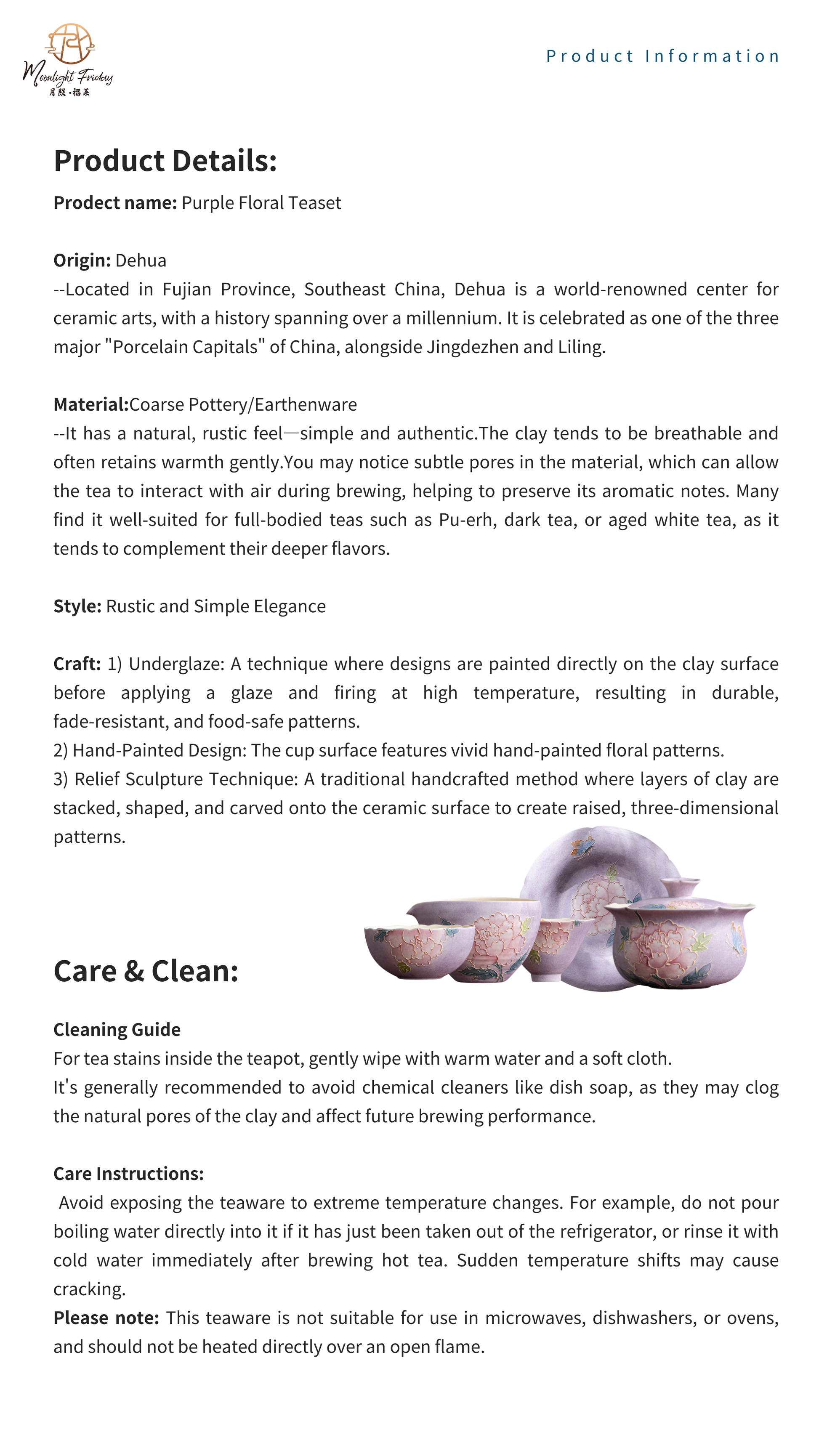 Please note: This teaware is not suitable for use in microwaves, dishwashers, or ovens, and should not be heated directly over an open flame.