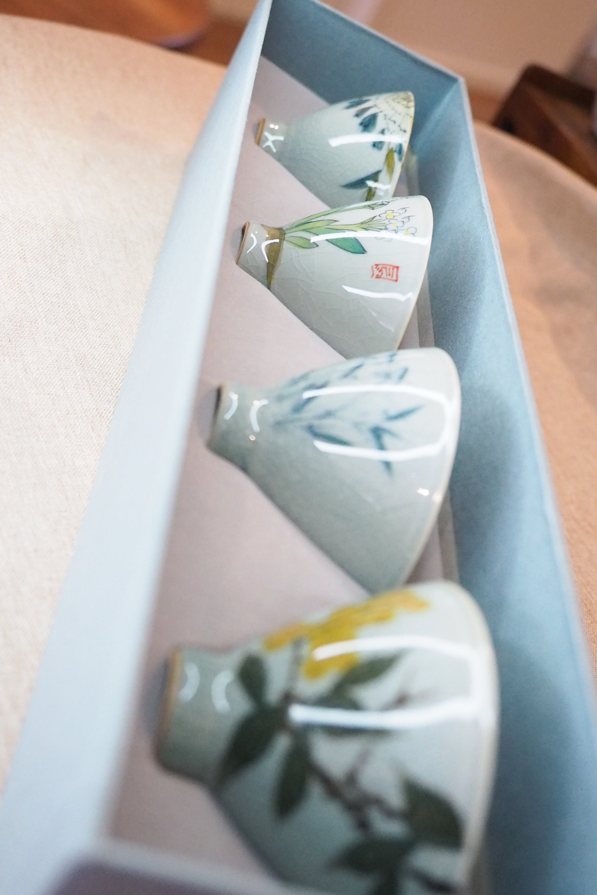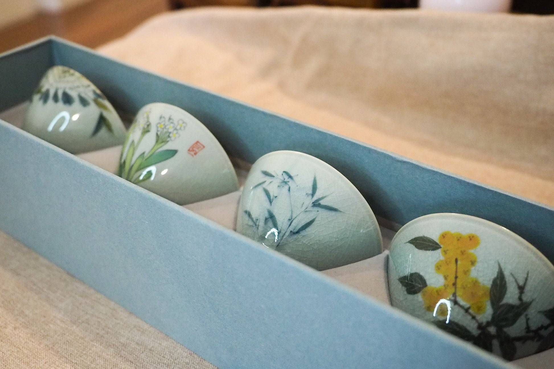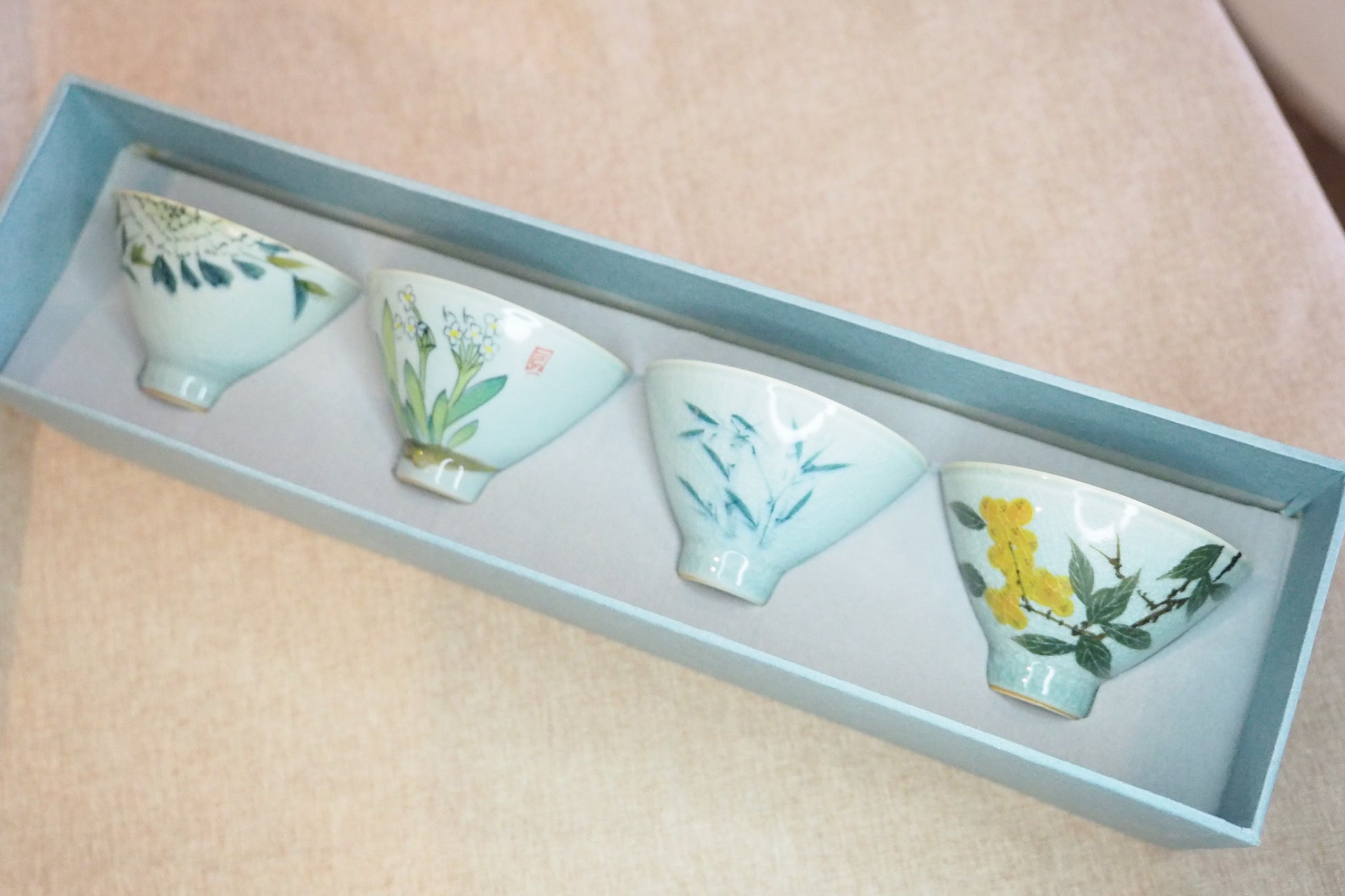 The set contains four teacups.